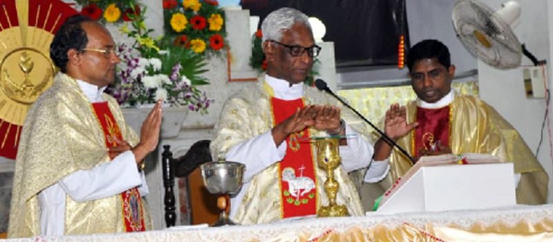 O tempo forte da festa foi uma eucaristia solene na igreja paroquial, concelebrada pelo vigário geral de Pondichery e 15 padres, agradecendo todas as graças recebidas do Senhor ao longo dos 175 anos de missão Cluny na região do Karikal.