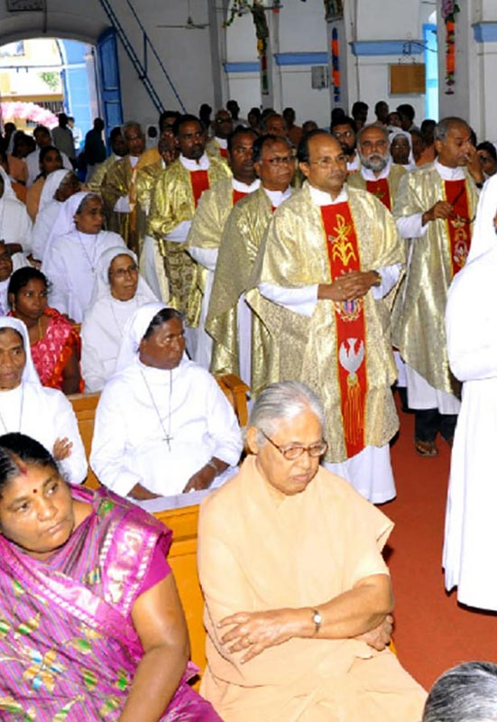 Le temps fort de la fête fut une eucharistie solennelle à l’église paroissiale, concélébrée par le vicaire général de Pondichéry et 15 autres prêtres, en remerciement pour toutes les grâces reçues du Seigneur au cours de 175 années de ministère de Cluny dans la région de Karikal.