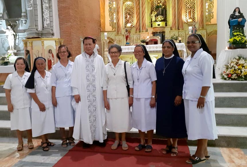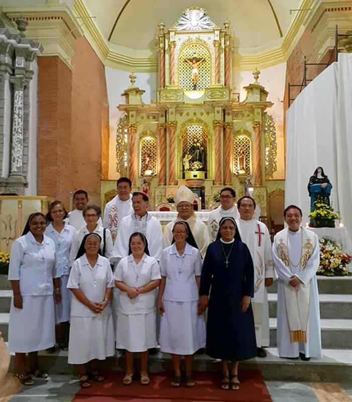 La célébration a commencé avec la Messe qui a été concélébrée par Mgr Ricardo L. Baccay, évêque de notre diocèse, et l’évêque émérite Mgr Jesus A. Cabrera dont le rôle fut essentiel pour la venue des Sœurs de Saint-Joseph de Cluny aux Philippines. Il y avait aussi quatre prêtres diocésains ainsi que de nombreux enseignants et élèves de nos écoles d’Aguilar, Labrador et Mangatarem.