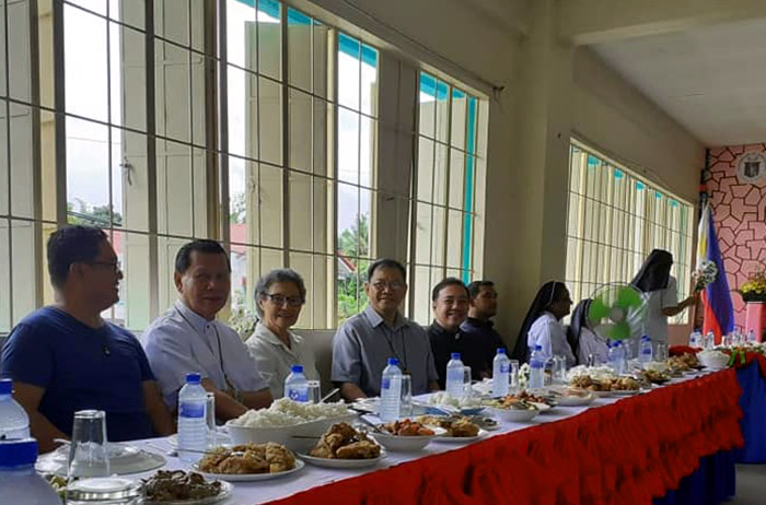 La Misa ha sido seguida de un pequeño programa y de una comida en la escuela elemental católica de Aguilar. Se proyectó un Power Point sobre la historia de las Hermanas de San José de Cluny en Filipinas. Fue un momento de encuentro y convivencia pero también de información para la mayoría de nuestros invitados. Cada una de nuestras tres escuelas mostró una presentación relacionada con los profesores y los alumnos. Los dos obispos presentes manifestaron su aprecio por la misión y la creatividad de las Hermanas. Sor Elizabeth nos transmitió el mensaje de Sor Allison. Más de 300 personas estaban presentes y todas ellas compartieron una excelente comida mientras que el programa proseguía.