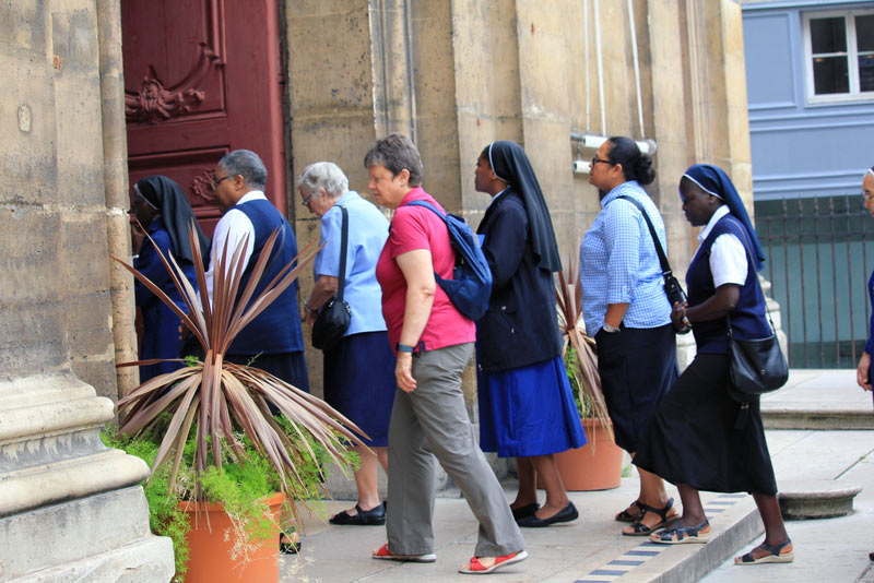 Diante da entrada da Basílica, a Soeur Agnès Thevenin fez-nos uma breve introdução sobre a Basílica e a sua importância histórica na Congregação.