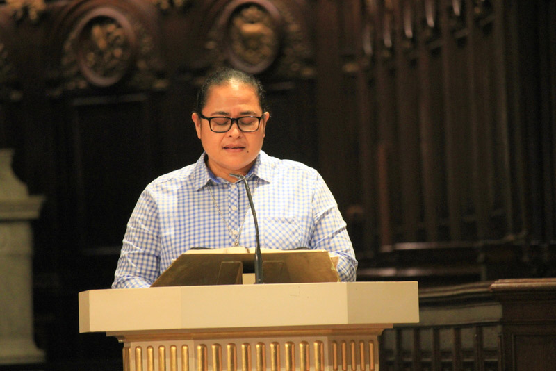 O Padre Eamonn Mulcahy, espiritano, concelebrou a Eucaristia com outros quatro sacerdotes. Depois da Eucaristia, reunimo-nos diante da estátua de Nossa Senhora das Vitórias, pedindo-Lhe a Sua bênção para o Capítulo.