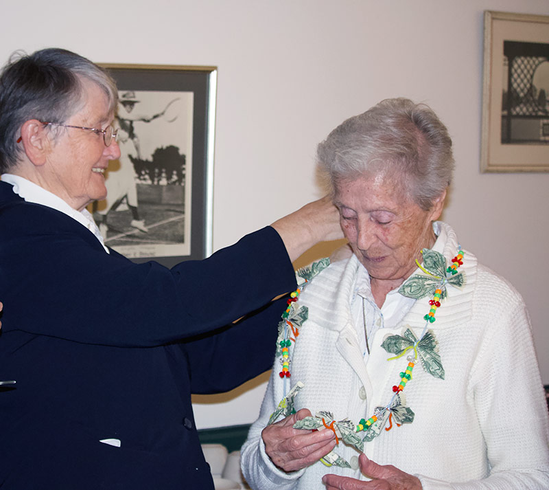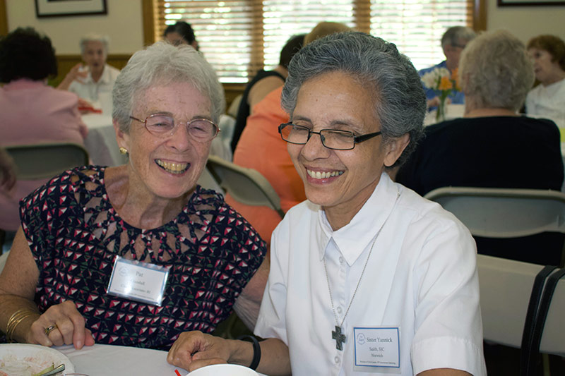 La Province des USA/Canada vient de célébrer le 70ème anniversaire de l’Apostolat Missionnaire. Le 14 juillet les Sœurs se sont rassemblées à Newport avec les affiliés, les associés, les amis et bienfaiteurs pour un repas, un temps de prière et de partage des souvenirs. Le groupe s’est rassemblé à la chapelle de l’Université le 15 juillet, fête de la Bienheureuse Anne-Marie Javouhey, pour une célébration de la messe de sa fête et pour le chant du Salve Regina, et ensuite pour un bon repas au restaurant La Forge, à Newport. En même temps ont été célébrés les 65 ans de vœux de Sœur Eugenia Brady et les 60 ans de vœux de Sœur Rachel Philippe Racine.