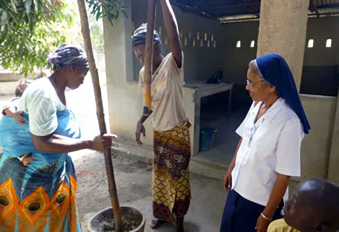 Estamos igualmente comprometidas en otras actividades además de estas. Una parte importante del trabajo de las Hermanas en Sierra Leona consiste en una escuela para personas con discapacidad auditiva. En nuestros centros de salud se supervisa la preparación de alimentos ricos en proteínas para los niños mal nutridos mientras que los padres aprenden el proceso y proporcionan una dieta adecuada para el crecimiento de su bebé.