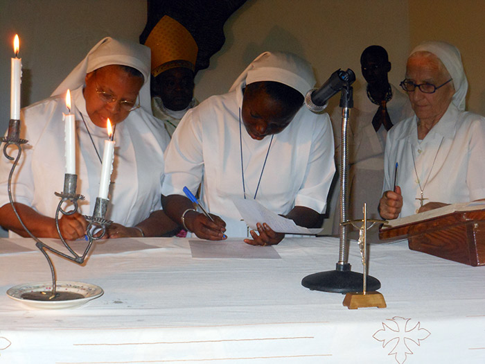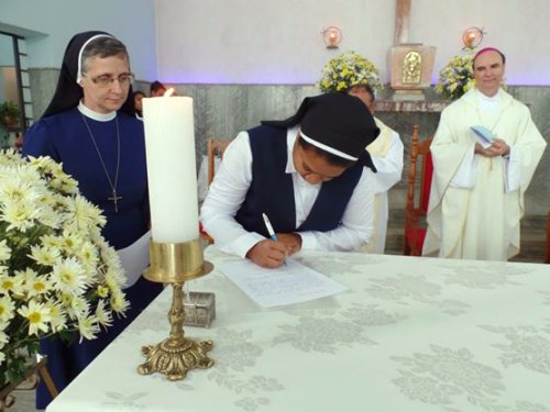 Ao terminar o tempo dos votos temporários, a Irmã compromete-se definitivamente pelos votos perpétuos, expressão do dom total a Deus na Congregação.