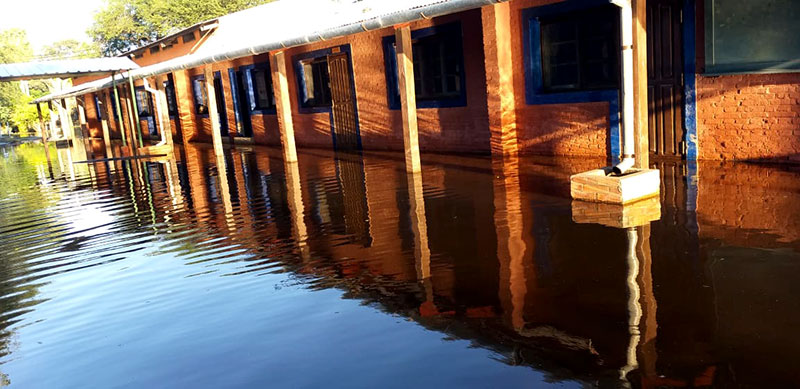 Dimanche 5 mai à l’aube, les eaux ont commencé à s’infiltrer très rapidement dans toute l’école ainsi que dans tout l’internat des enfants, en inondant tout. Frère Aníbal Caballero, directeur de l’institution, a parlé à Radio Pai Puku pour informer les parents de la situation et les inviter à se rendre à l’école dès que possible pour chercher leurs enfants. Heureusement, ce jour-là, 220 enfants à peu près, ont pu sortir sans difficultés majeures.