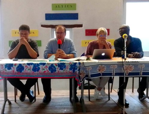 Mesa redonda del sábado por la noche con varios historiadores Frédéric Régent Historien y director de seinario en la Sorbonne (especialista en la historia de la esclavitud), Philippe Pichot, ( Presidente de la ruta de la abolición y de los derechos humanos del Gran Este) de Pascale Conuel, historiadora, y del Emmanuel Gordien, Presidente del Comité marcha del 23 de mayo de 98 (asociación memorial antillana cuyo objetivo es: Rehabilitar, honrar y defender la memoria de las víctimas de la esclavitud colonial) y Médico Virólogo.