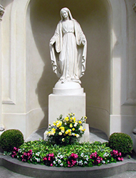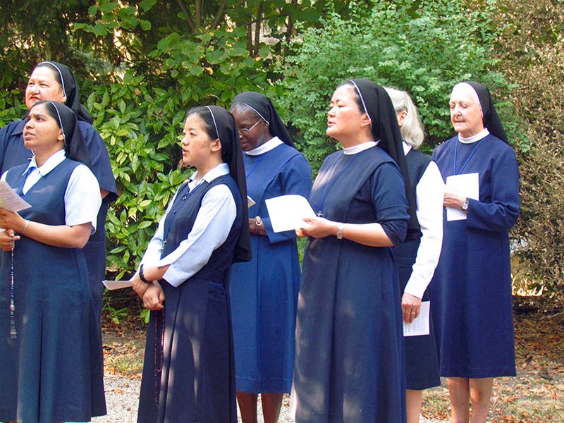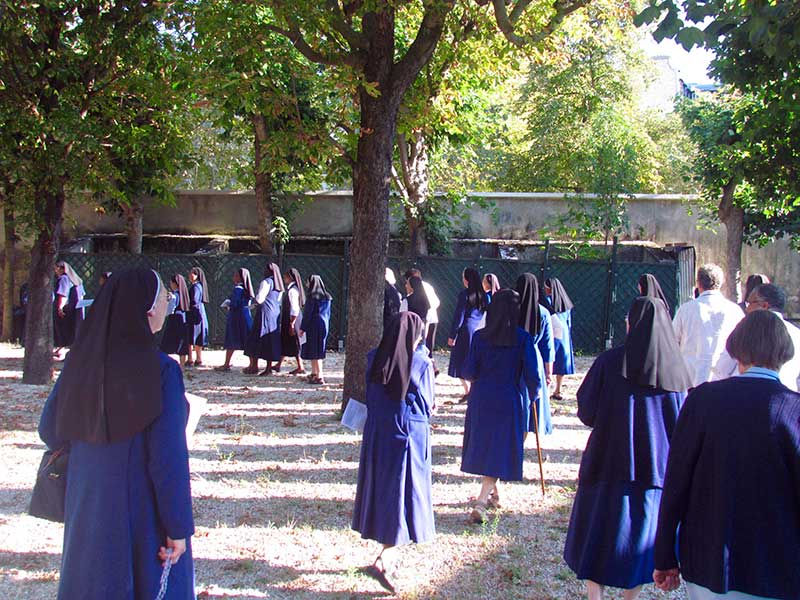 Pour clôturer cette belle journée de fête, nous avons chanté solennellement les Vêpres et en procession dans les jardins, prié le chapelet d’une manière originale accompagné de chants à la Vierge Marie –Les étapes étaient devant les différentes statues de la Vierge se trouvant sur la propriété. Les dizaines priées en français et en anglais ont permis différentes expressions. Les Sœurs ont prié et chanté de tout leur cœur. La Sainte Vierge était présente au ciel comme sur la terre !