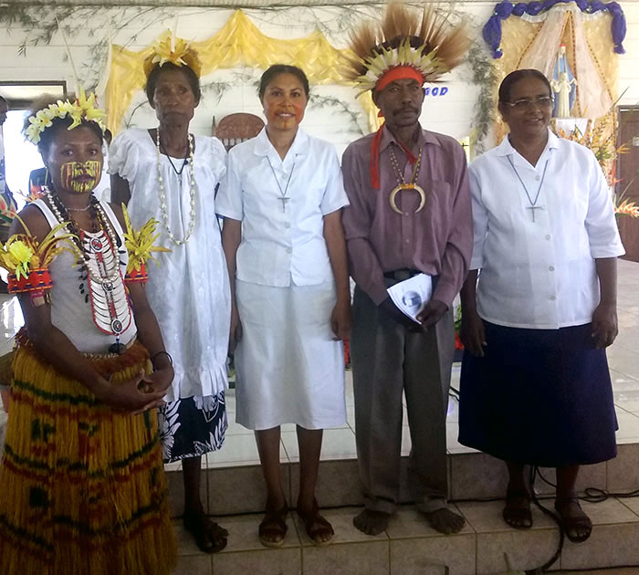 Las Hermanas de San José de Cluny han encontrado con frecuencia desafíos aparentemente insuperables en su apostolado. Incluso en este día de alegría y de esperanza, las Hermanas de Bema y Kanabea no pudieron viajar a la ciudad de Kerema a causa del mal tiempo. Sor Rachel Arputham dio la bienvenida diciendo que este día era un día grande para la Congregación de las Hermanas de San José de Cluny. Con hermanas de 43 nacionalidades trabajando en 56 países del mundo, Sor Fátima Mafu, la primera hermana de Papua Nueva Guinea que hace profesión perpetua, ha hecho cambiar el número a 44 !