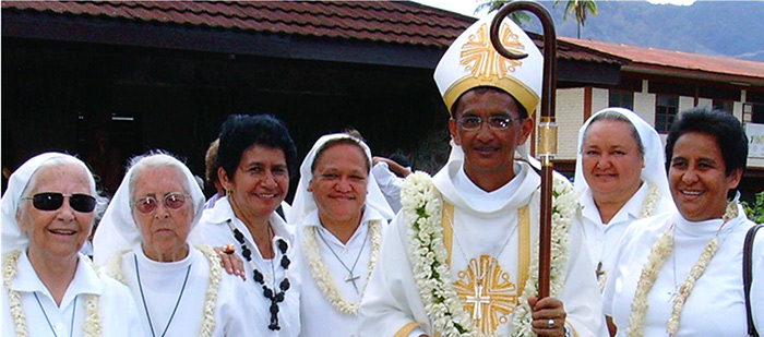 MARQUESAS : En junio de 1847, dos hermanas abren una escuela para niñas en Vaitahu. Pero la guerra entre las islas de Tahuata y de Hiva-Oa les obliga a dejar la isla en septiembre de 1847. El 4 de marzo de 1864, cuatro hermanas desembarcan en Taiohae. Su escuela-internado cuenta más de 80 alumnas.