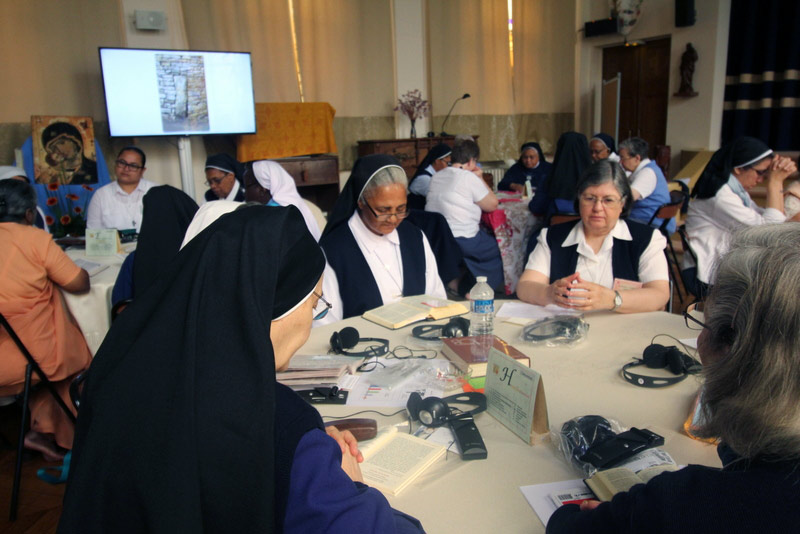 O dia começou às 8h45 com a “Partilha da Fé “, em pequenos grupos. Este momento foi seguido de troca de impressões, nas mesas redondas, com as Provinciais da Europa, América do Norte e S. Pedro e Miquelon. A escuta de cada Província / Vice- Província / Região foi um tempo de grandes descobertas e de enriquecimento. Celebrámos a Eucaristias antes do jantar.