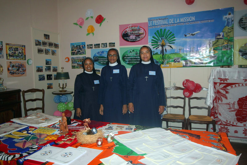 La journée a commencé à 9h par une prière suivie d’un chant d’envoi en mission en anglais. Durant le chant, Sœur Claire Houareau a appelé les provinces qui sont parties alors vers leurs stands. Plusieurs sœurs en tenues locales annonçaient déjà la couleur de la journée !