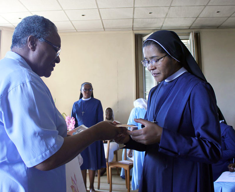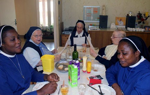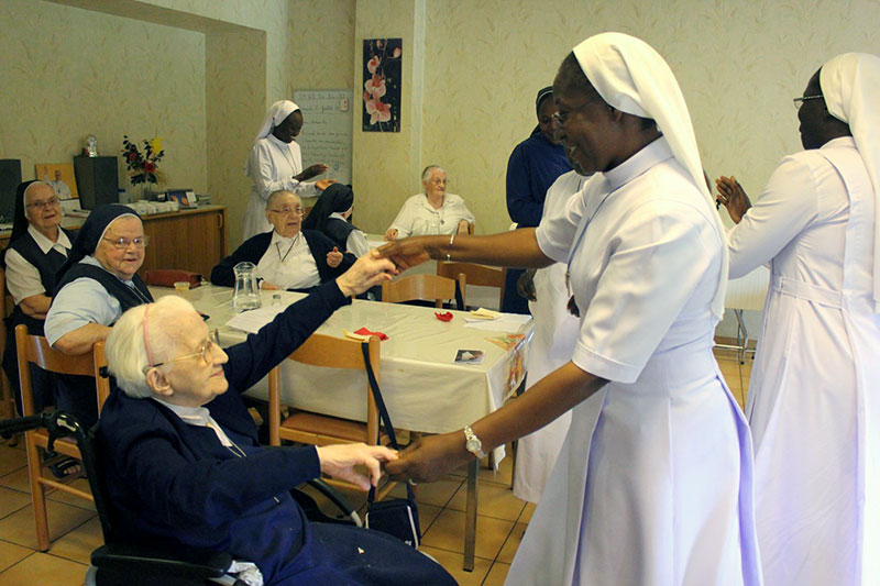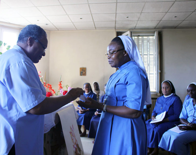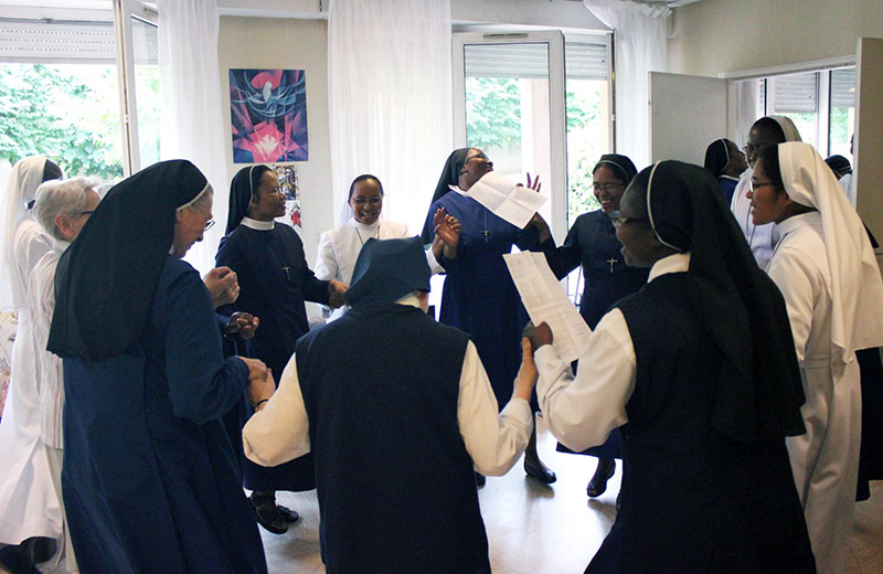 24 Irmãs francófonas de 7 Províncias (África do Oeste Francófona, Guiné, África Central, França / Suíça / São Pedro e Miquelon, Haiti, Madagáscar, Antilhas / Guiana) preparam-se para os votos perpétuos na Casa Mãe, Paris, França.
