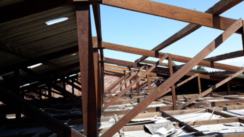 No lar onde vivem as crianças as chapas da varanda voaram todas, a sala de estudo, a casa anexa dos meninos também as chapas foram levadas pelo vento, a casa de hóspedes ficou sem janelas. Os dormitórios dos meninos não sofreram nada graças a Deus.