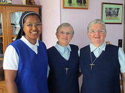 son los terrenos de misión. Pero en 2008, con gran alegría y emoción, vemos “renacer” la primera misión de las hermanas en Saint-Pierre, con la llegada de una hermana auxiliar de enfermería que trabaja media jornada en la Casa de retiro « Eglantine ». También con mucha alegría hemos acogido a dos de nuestras hermanas de Madagascar. Son muy apreciadas por la población y son nuestros "rayos de sol".