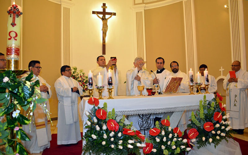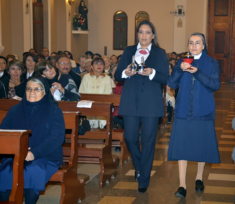 A noite foi o ponto culminante da abertura : a concelebração eucarística, presidida pelo D. Adriano Tomasi OFM, antigo bispo auxiliar da arquidiocese de Lima e grande amigo da Congregação no Peru. Concelebraram oito sacerdotes. A homilia de D. Tomasi permitiu-nos aprofundar o significado desta celebração em ação de graças pelo passado e a esperança para o futuro.