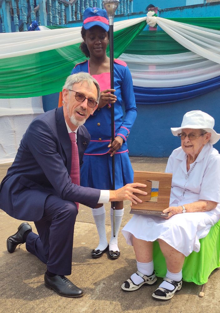 La communauté Irlandaise et l’ambassade d’Irlande en Sierra Leone ont célébré l’événement de la prestigieuse cérémonie de remise des prix le 05 février 2025 à Charlotte Street, Freetown, Sierra Leone. Sœur Teresa McKeon était présente pour recevoir le « Presidential Distinguished Service Award » en reconnaissance de son importante contribution à l’éducation et à l’amélioration des conditions de vie des femmes en Sierra Leone.