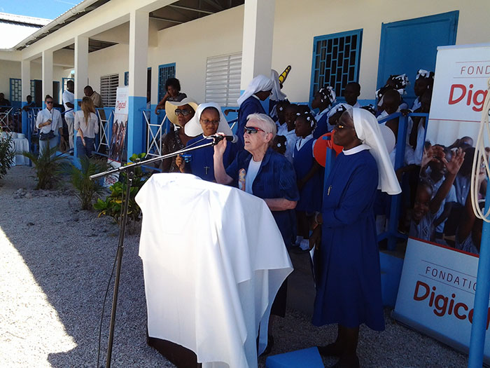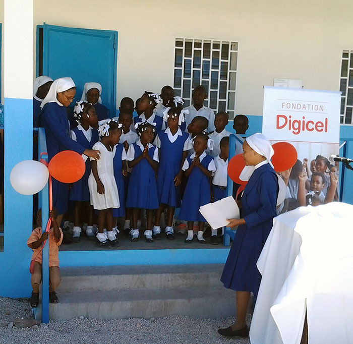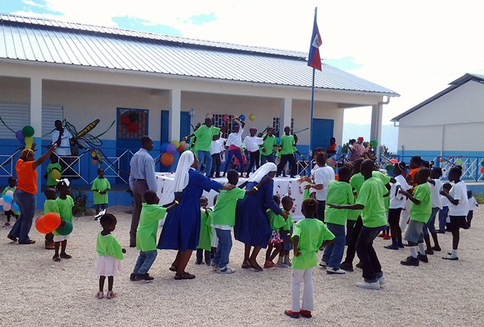 Une association « Haiti and Trinidad » est créée. Nos sœurs d’Irlande sont aussi intéressées par ce projet... et s’y engagent aux côtés de la Trinidad afin de présenter le projet à Misean Cara qui l’agrée... « Haiti and Trinidad » se donne par des activités et collecte des fonds. Enfin en 2013 le terrain est acheté aux périphéries de la capitale. Grâce à la générosité de la fondation Digicel, une téléphonie d’origine irlandaise, à Misean Cara etc, l’Ecole est reconstruite. (20 salles de classe)